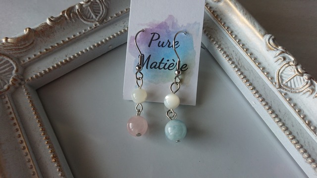 天然石オッドアイピアス【アクアマリン×ローズクォーツ】