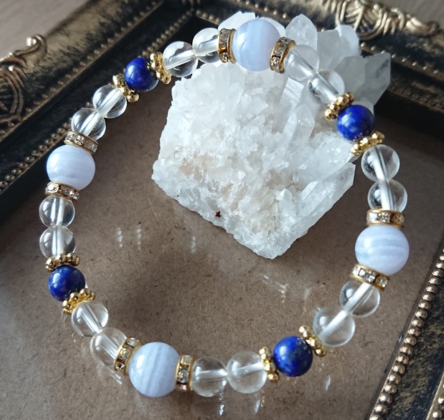 天然石ブレスレット 16cm【ラピスラズリ×水晶×ブルーレースアゲート】