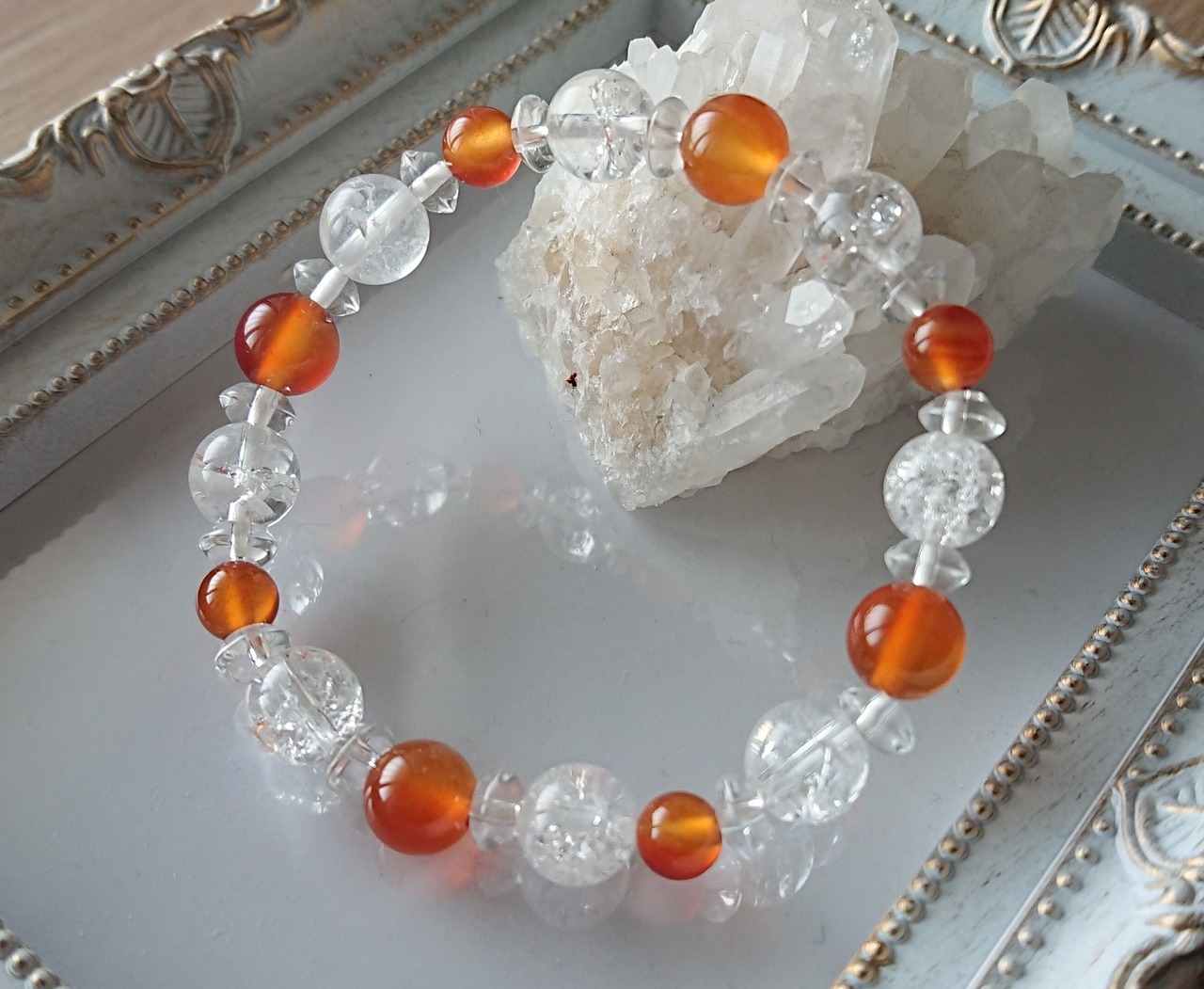 天然石ブレスレット 15cm【カーネリアン×水晶】