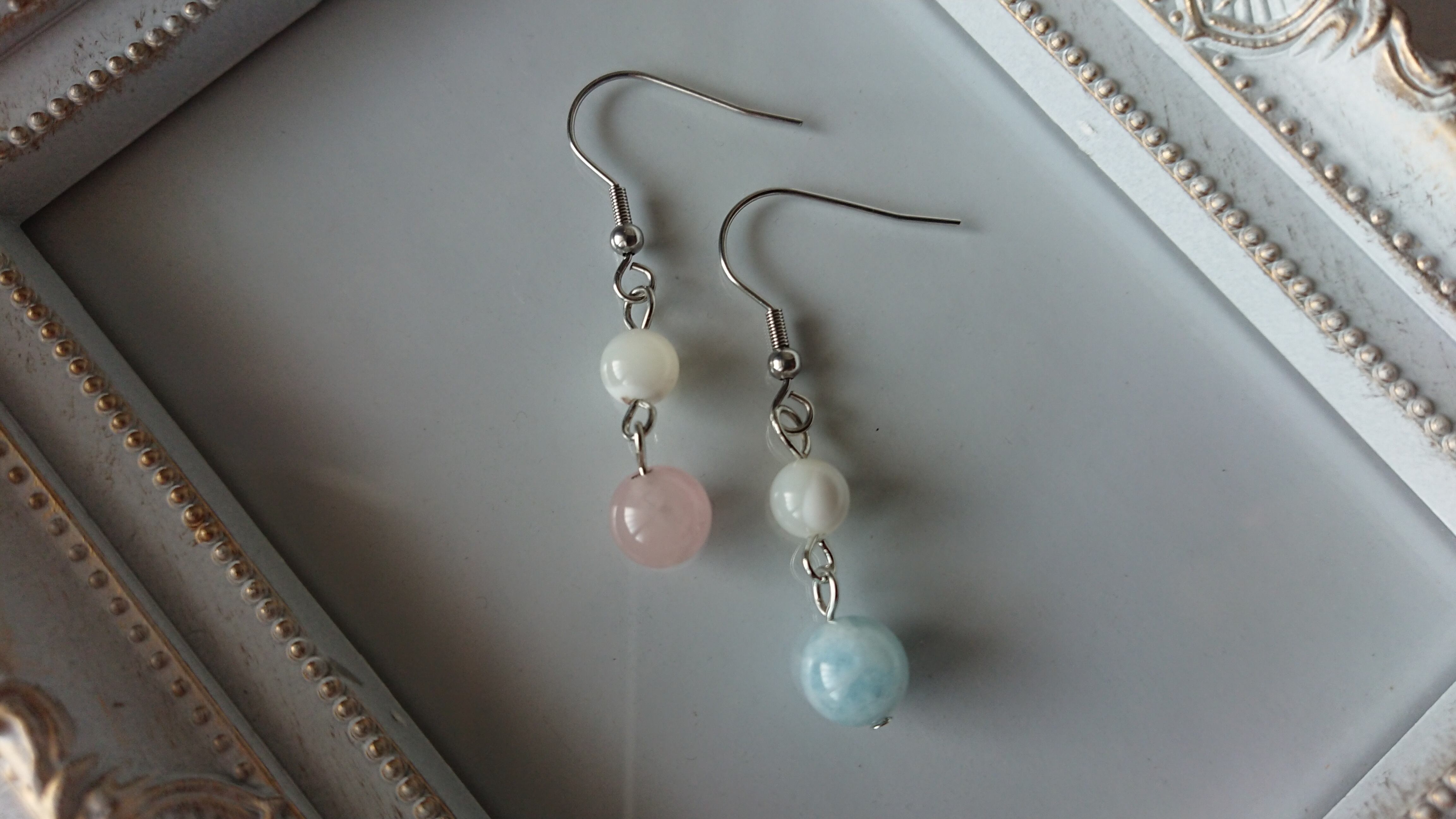 天然石オッドアイピアス【アクアマリン×ローズクォーツ】